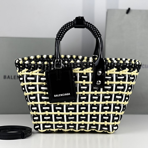 [GB] 발렌시아가 XS 비스트로 바스켓 화이트 블랙 옐로우 토트백