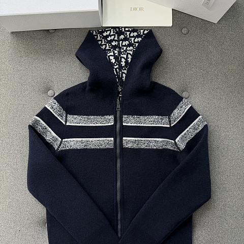 [TJ공장] 디올 오블리크 패턴 리버시블 블루 캐시미어 후드집업 여성복