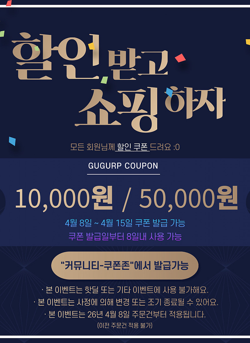 <이벤트 진행중> 두 가지 할인쿠폰 받고 쇼핑하세요~