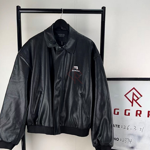 QC2374.260302-5049 [GTR공장] 발렌시아가 블랙 레더 스포티B 택시 블루종 자켓