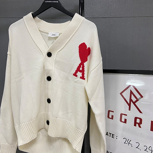 QC588.240219-1544 [탑아미] 아미 빅 하트 로고 인타르시아 화이트 가디건