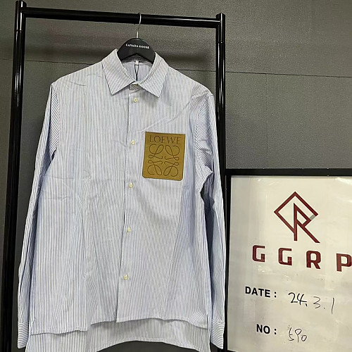 QC590.240212-2623 [V공장] 로에베 아나그램 레더 스카이 블루 스트라이프 셔츠