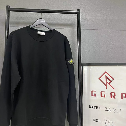 QC592.240223-1914 [탑스토니] 스톤 아일랜드 가먼트 다이 블랙 코튼 플리스 스웻셔츠 23FW …