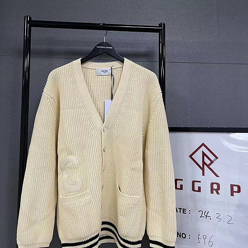 QC596.240213-4587 [V공장] 셀린느 컬리지 C로고 코튼 캐주얼 에크루 가디건