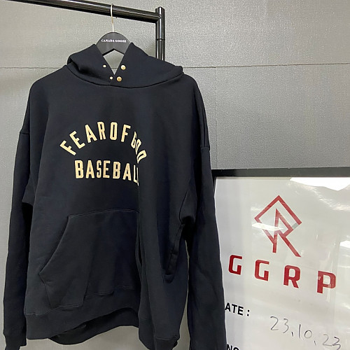 QC215.231017-4504 [킹샤크] 피어오브갓 시즌7 베이스볼 블랙 로고 후드