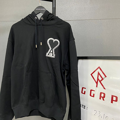 QC216.231017-4504 [탑아미] 아미 빅 하트 로고 블랙 느와르 후드