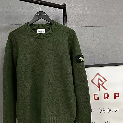 QC211.231015-3377 [탑스토니] 스톤 아일랜드 램스울 올리브 그린 크루넥 니트 22FW 508…