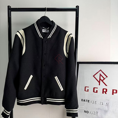 QC2219.251111-0521 [잔디집] 생로랑 블랙 화이트 울 테디 봄버 자켓
