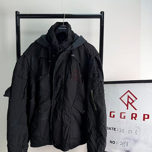 QC2198.251106-1787 [GTR공장] 발렌시아가 디스트로이드 빈티지 립스탑 블랙 봄버 자켓