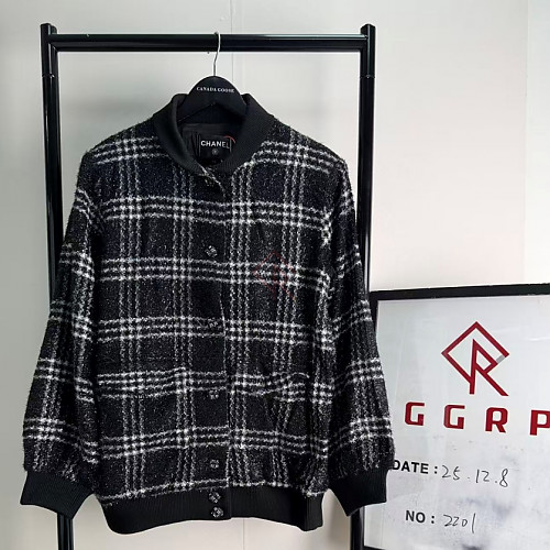 QC2201.251106-0264 [잔디집] 샤넬 체크 버튼 블랙 울 트위드 자켓