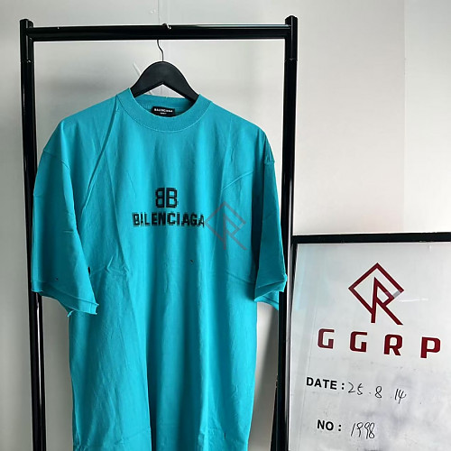 QC2002.250808-0176 [계단] 1+1 발렌시아가 리얼 모델 애쉬 블루 티셔츠
