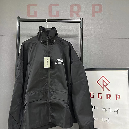 QC1129.240725-5119 [V공장] 발렌시아가 3B 스포츠 아이콘 블랙 윈드브레이커 자켓
