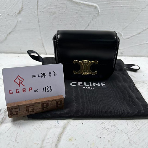 QC1133.240721-5033 [블랙 프레임] 셀린느 카프스킨 레더 샤이니 블랙 미니 트리오페 숄더백 1…
