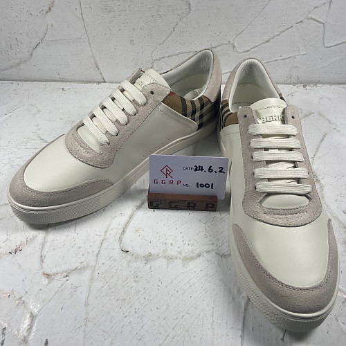 QC1001.240518-1727 버버리 레더 체크 화이트 아카이브 베이지 스니커즈