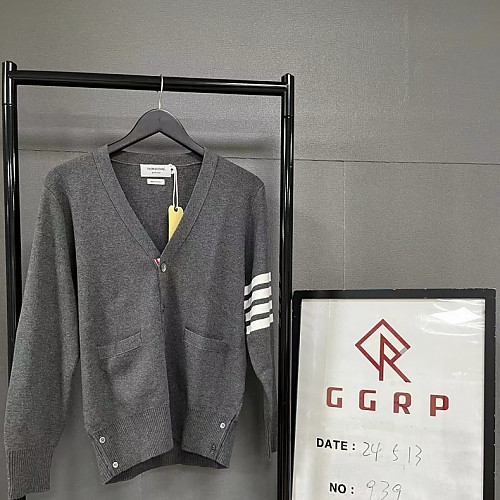 QC939.240508-3844 [TJ공장] 톰브라운 밀라노 스티치 코튼 4바 그레이 V넥 가디건