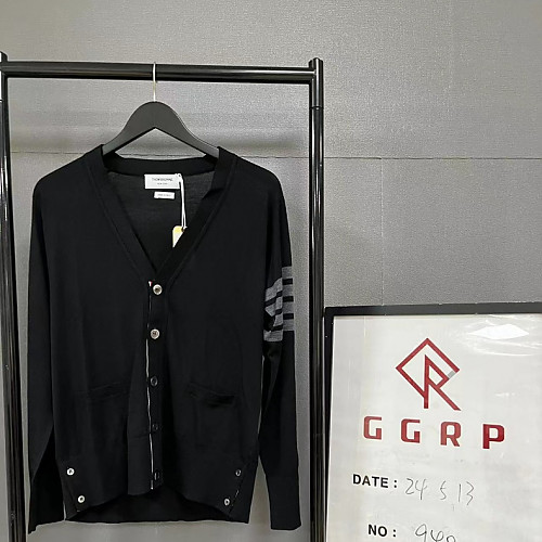 QC940.240508-3844 [TJ공장] 톰브라운 4바 메리노 울 V넥 블랙 가디건