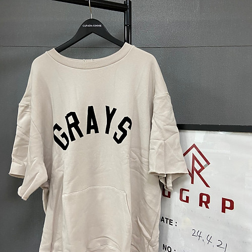 QC842.240415-1536 [세나] 피어오브갓 시즌7 GRAYS로고 라이트 오트밀 티셔츠