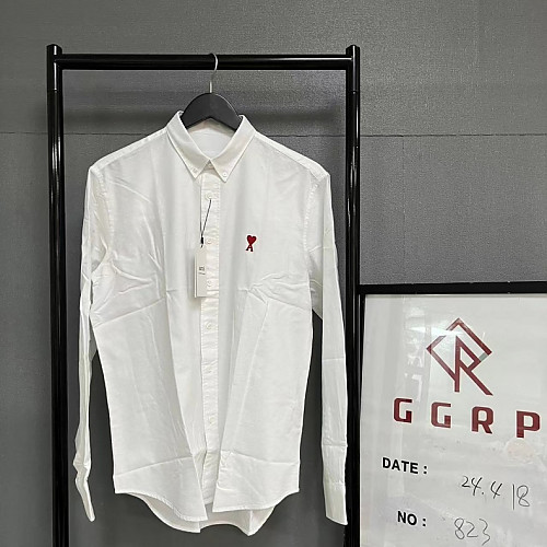 QC823.240320-1308 [탑아미] 아미 스몰 하트 로고 옥스포드 화이트 버튼 다운 셔츠