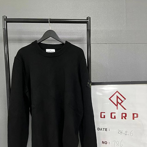 QC786.240401-1768 [탑스토니] 스톤 아일랜드 램스울 블랙 크루넥 니트 22FW 508A3