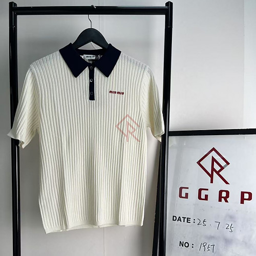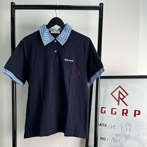 QC1947.250709-2825 [잔디집] 미우미우 로고 체크 네이비 폴로티