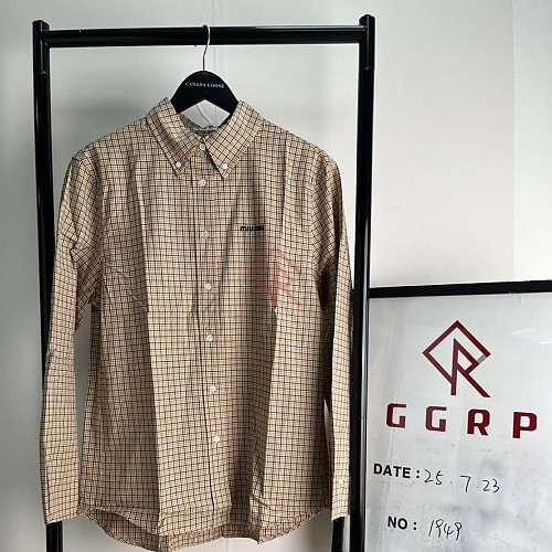 QC1949.250709-2825 [잔디집] 미우미우 로고 체크 베이지 셔츠