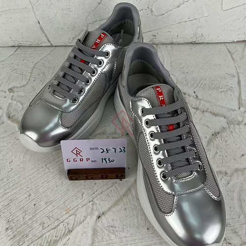 QC1950.250707-5763 프라다 아메리카컵 메탈릭 바이크 실버 그레이 스니커즈