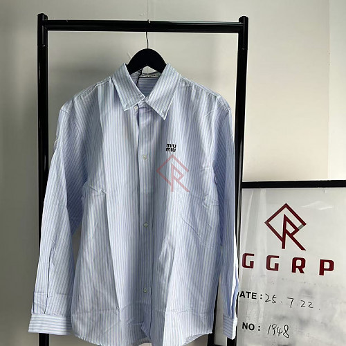 QC1948.250709-2825 [잔디집] 미우미우 로고 스트라이프 블루 코튼 셔츠