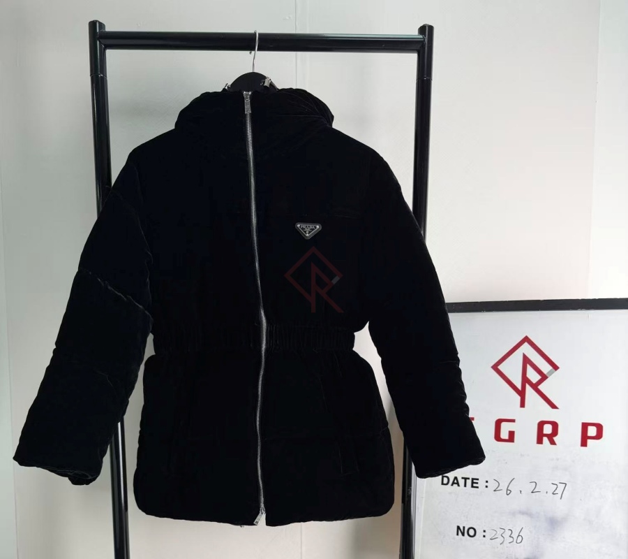 QC2336.260131-4492 프라다 벨벳 블랙 다운 자켓 여성복