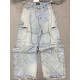 [TJ공장] 발렌시아가 로고 올 오버 스트레이트 데님 진 블루 카고 팬츠