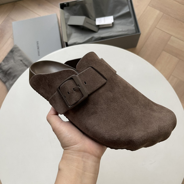 발렌시아가 선데이 스웨이드 브라운 뮬 슬리퍼