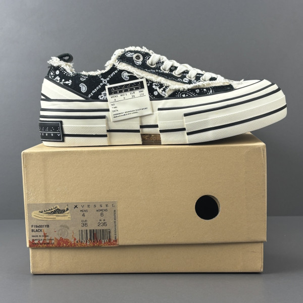 엑스베셀 페이즐리 블랙 화이트 로우탑 스니커즈
