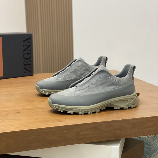 제냐 트리플 스티치 몬테 그레이 스웨이드 스니커즈
