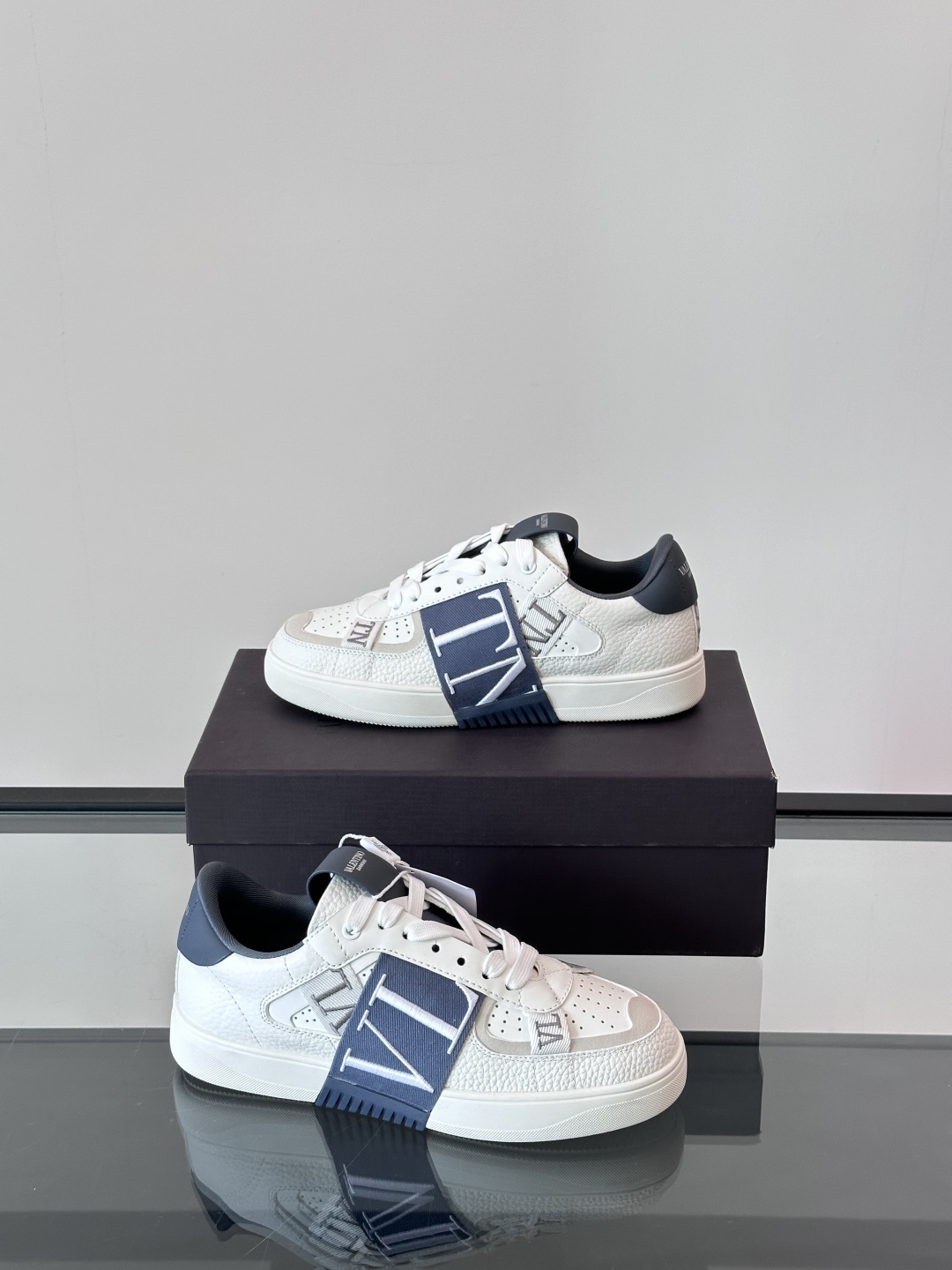 제품명 : 발렌티노 로고 밴드 화이트 블루 스니커즈
