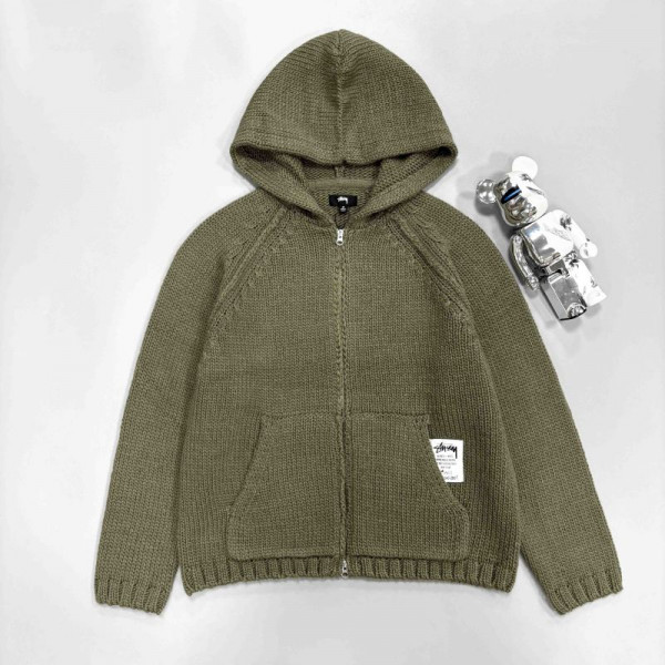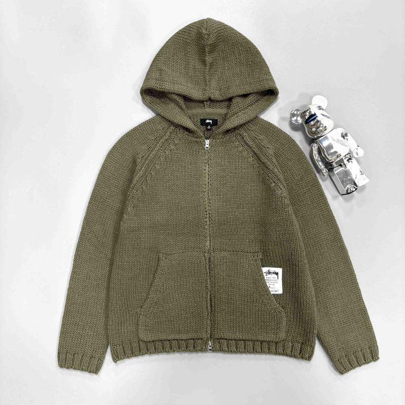 [AE] 스투시 청키 니트 카키 그린 후드집업