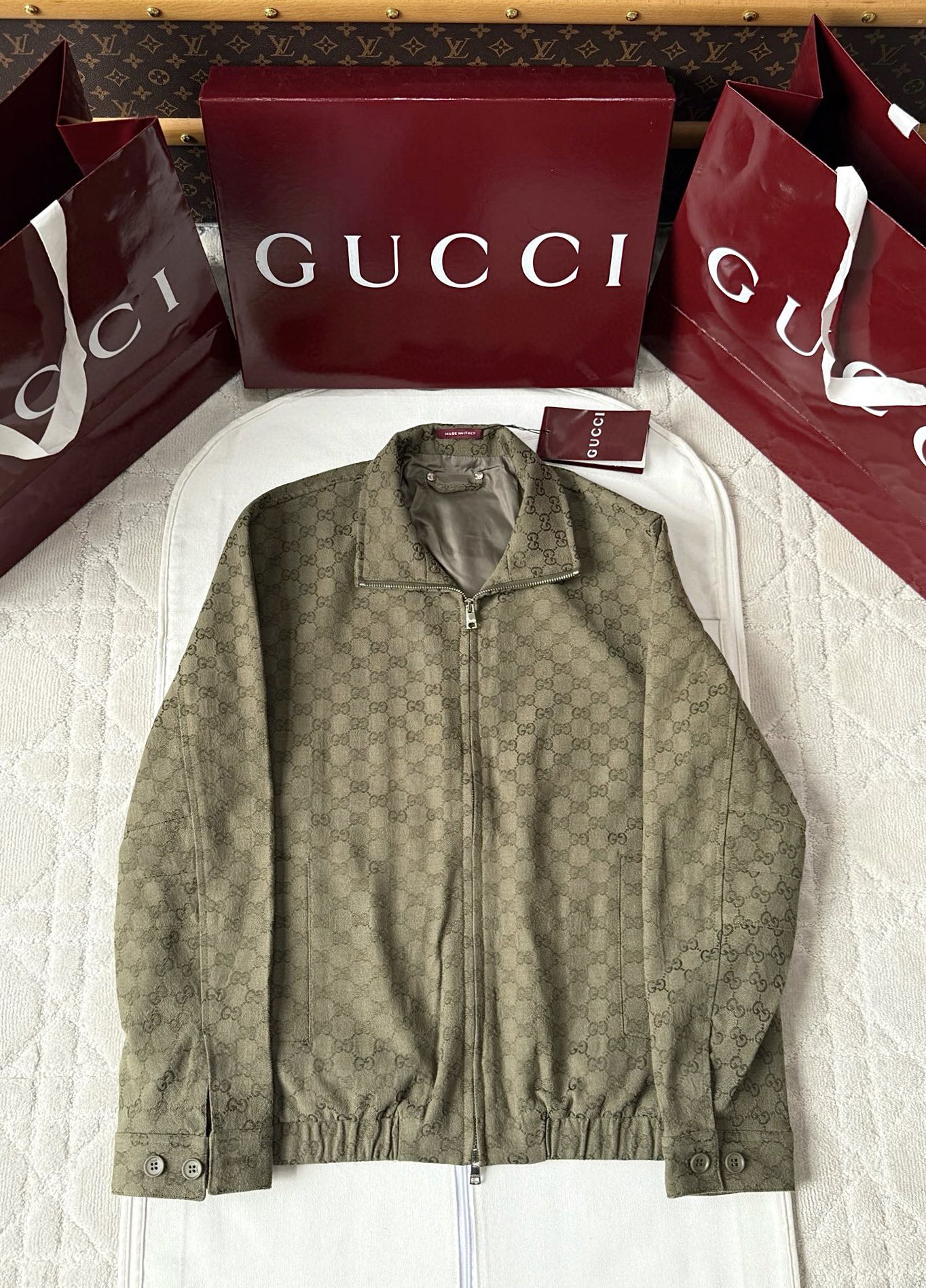제품명 : 구찌 GG 자카드 카키 그린 봄버 자켓