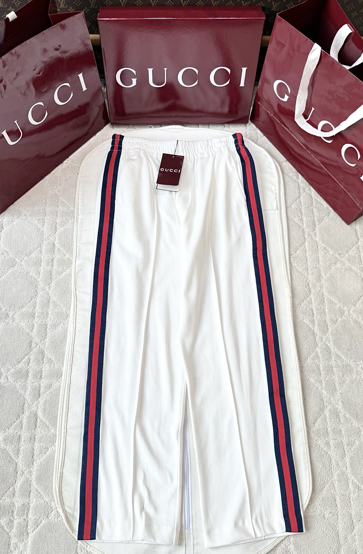 제품명 : 구찌 스트라이프 화이트 트랙 팬츠