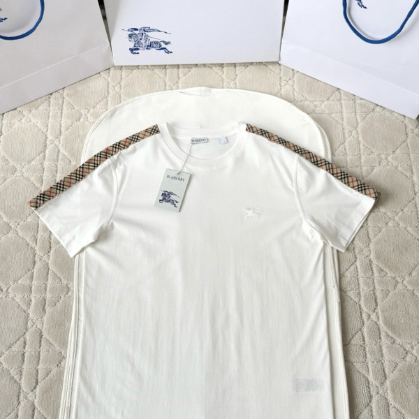 [V공장] 버버리 체크 트리밍 화이트 티셔츠