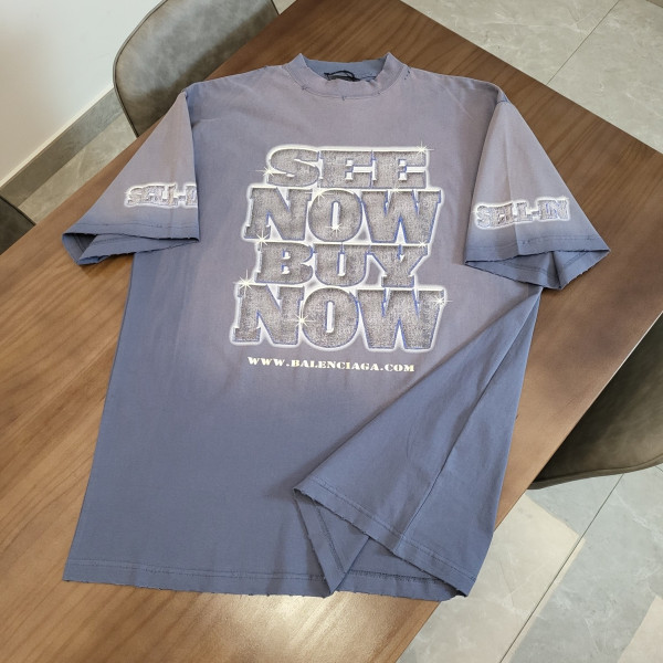 [GTR공장] 발렌시아가 SNBN 슬로건 워시드 블루 티셔츠