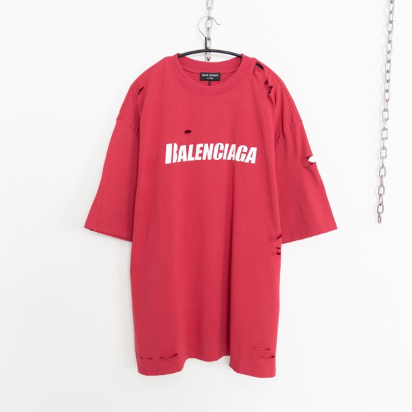 [사슬공장] 발렌시아가 디스트로이드 레드 티셔츠