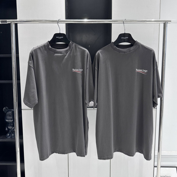[V공장] 발렌시아가 웨이브 로고 디스트로이드 그레이 티셔츠