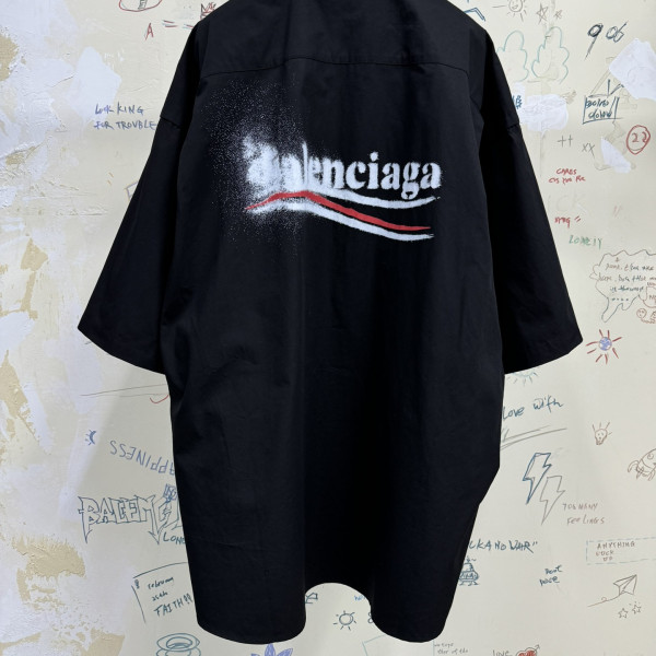 [A발렌샤] 발렌시아가 웨이브 로고 스텐실 블랙 반팔 셔츠