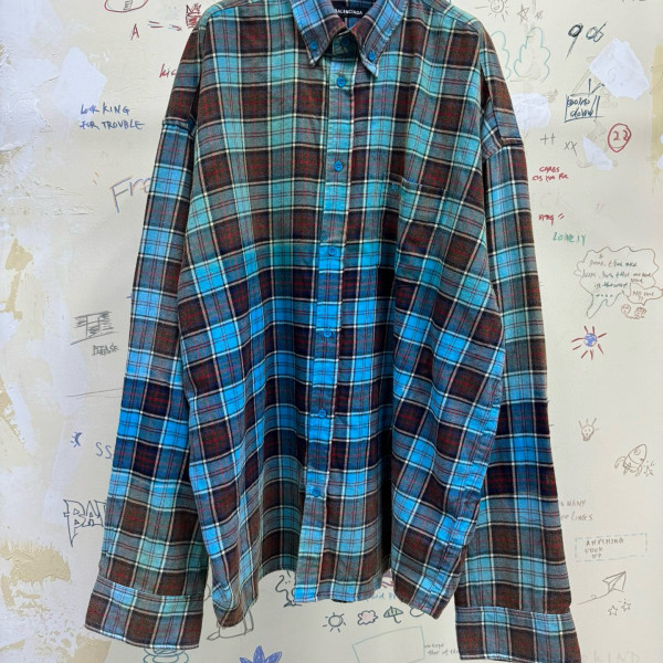 [A발렌샤] 발렌시아가 블리치드 체크 그린 플레이드 셔츠