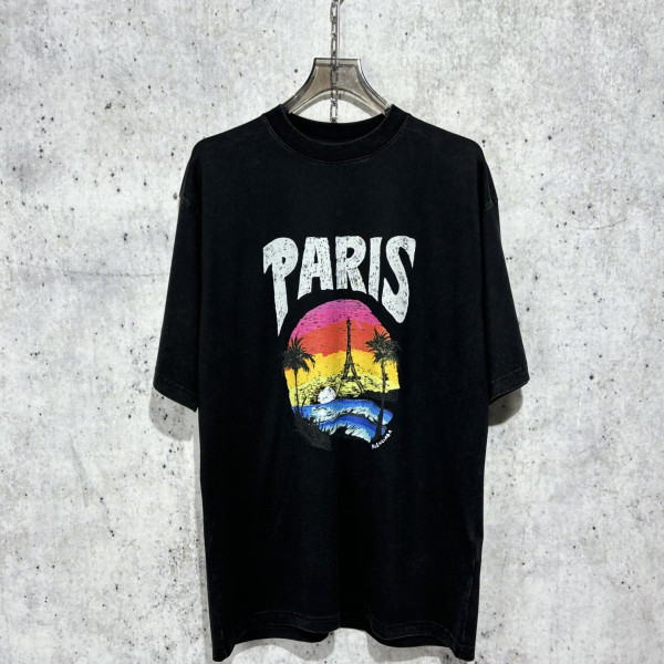 [사슬공장] 발렌시아가 PARIS 트로피컬 블랙 티셔츠