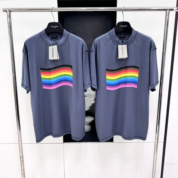 [V공장] 발렌시아가 레인보우 플래그 인사이드 아웃 블루 티셔츠