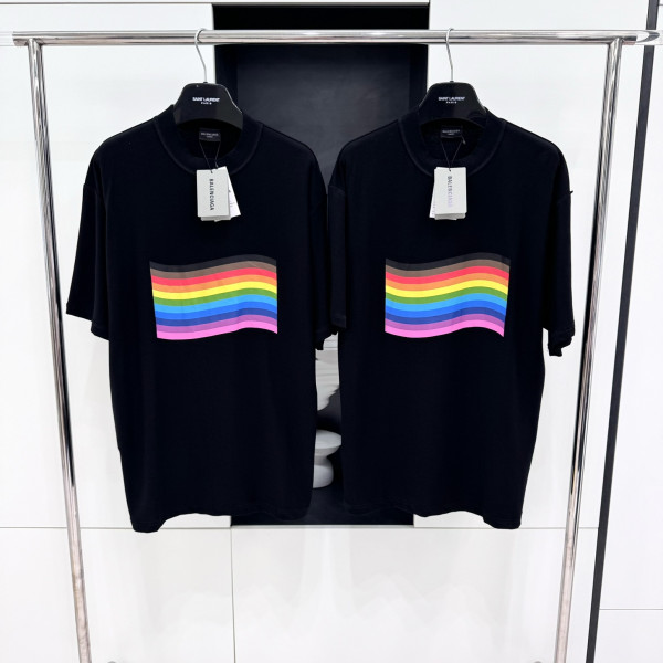 [V공장] 발렌시아가 레인보우 플래그 인사이드 아웃 블랙 티셔츠