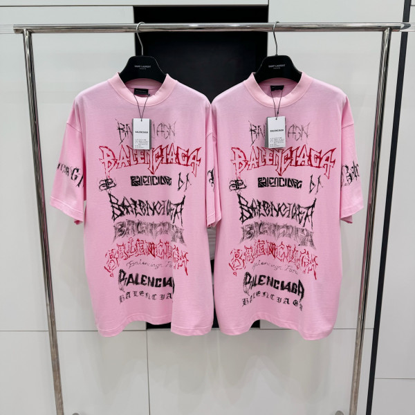 [V공장] 발렌시아가 메탈 올 오버 로고 핑크 티셔츠