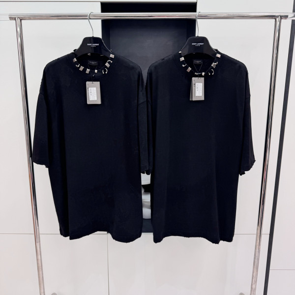 [V공장] 발렌시아가 피어싱 캐주얼 블랙 티셔츠