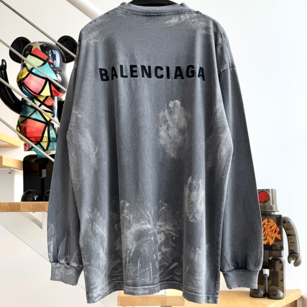 [계단] 발렌시아가 로고 워시드 그레이 롱 슬리브