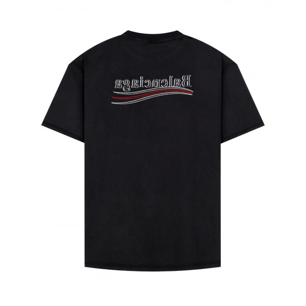 [잔디집] 발렌시아가 캠페인 웨이브 로고 인사이드 아웃 워시드 블랙 티셔츠