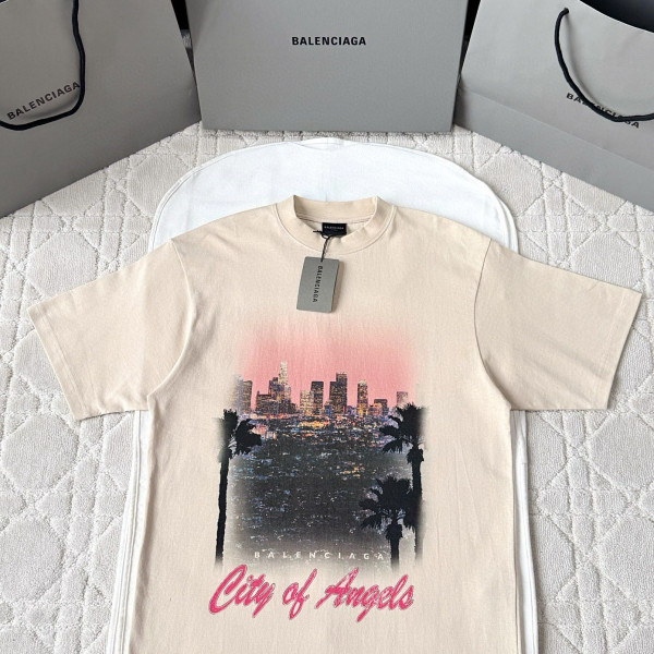 발렌시아가 시티 오브 엔젤스 페이드 화이트 티셔츠